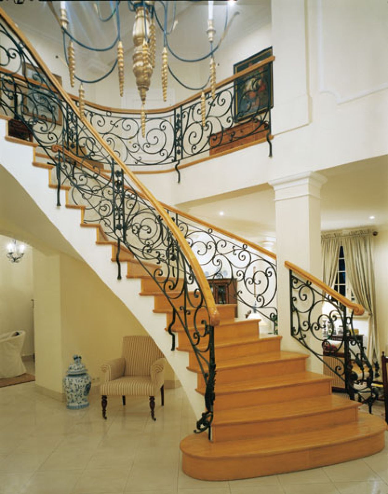 Wnętrze jest podzielone na część reprezentacyjną i ściśle prywatną. Do obu prowadzą niezależne wejścia z zewnątrz. Pierwszą tworzy salon połączony z pokojem jadalnym i obszernym holem, którego ozdobą są prowadzące na piętro schody z kutą balustradą. Druga to tzw. pokój rodzinny, który połączono z jadalnią i kuchnią w jedną całość z dostępem do gabinetu i biblioteki, a także sypialnie i salonik muzyczny na piętrze. W tych pomieszczeniach toczy się życie rodzinne i tutaj przyjmuje się gości.