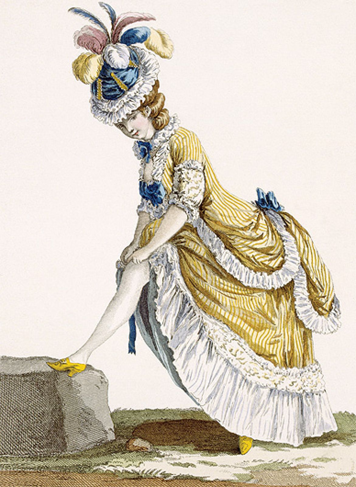 Do XVIII stulecia damskie nogi były niewidoczne. Wyjątkiem w tej kwestii okazała się Joanna d’Arc. A że nosiła ona strój żołnierski, to stała się pierwszą kobietą, która odważyła się publicznie paradować w pończochach. Jeszcze w XVI w., gdy na ręce posła Hiszpanii w Londynie złożono w darze dla jego monarchini parę jedwabnych pończoch, dyplomata wykrzyknął z oburzenia: „Proszę to natychmiast zabrać. Jej Królewska Mość nie ma nóg!!!”.
