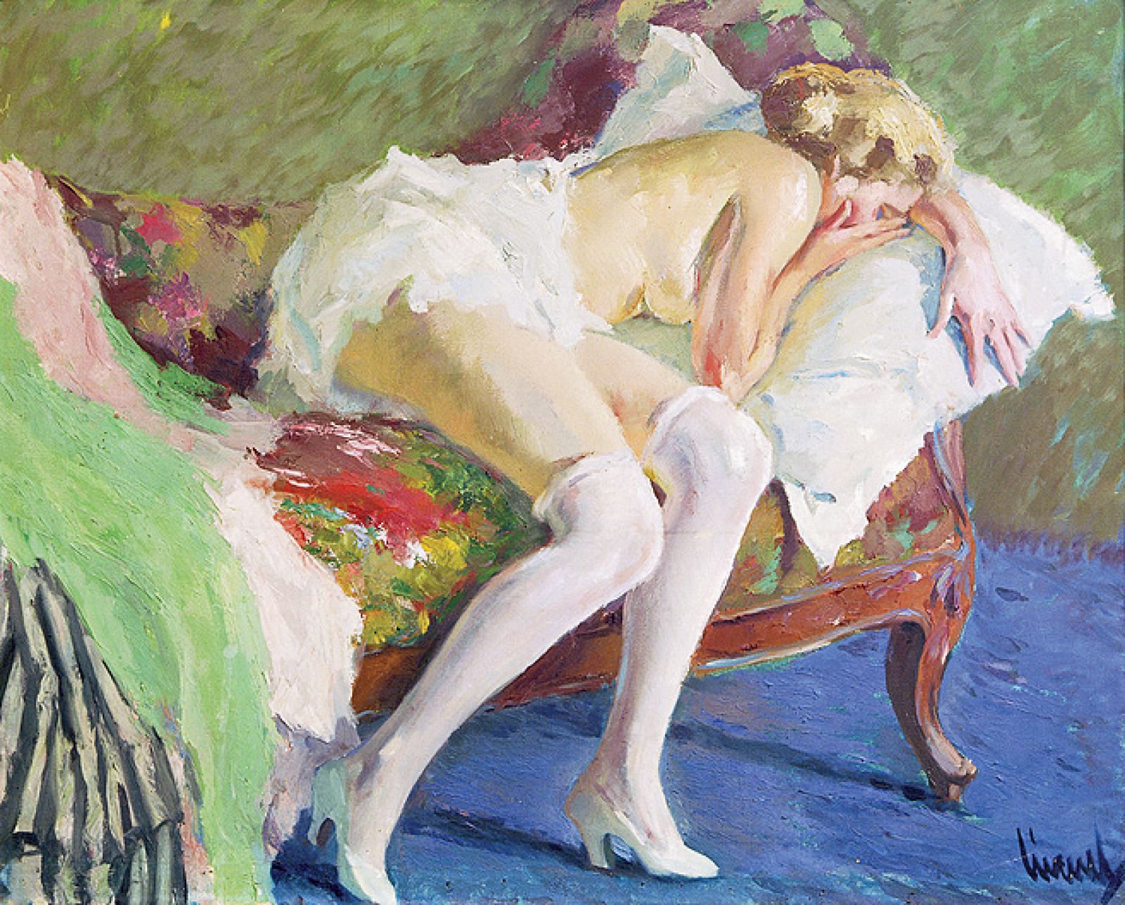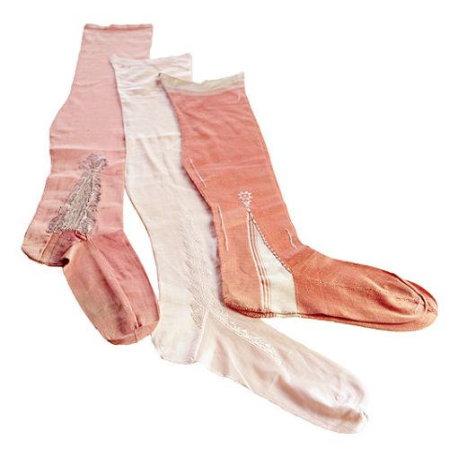 Jej łydki oblekał już wtedy sztuczny jedwab (znany od końca XIX wieku), tańszy niż prawdziwy i o wiele bardziej sexy niż beżowy fildekos (rodzaj przędzy bawełnianej). W międzywojniu, kiedy kult nóg sięgnął zenitu, najpopularniejsze były pończochy cieliste w odcieniach: „opalony” brąz, miodowy, z lekką szarością itd. „Ubrane” nogi to obowiązek pań aspirujących do „towarzystwa” – mawiono.