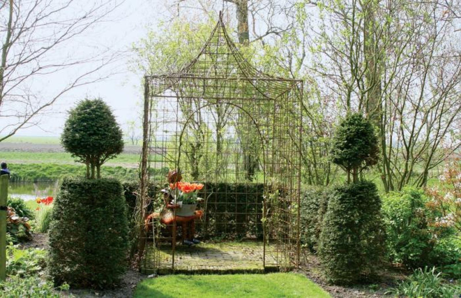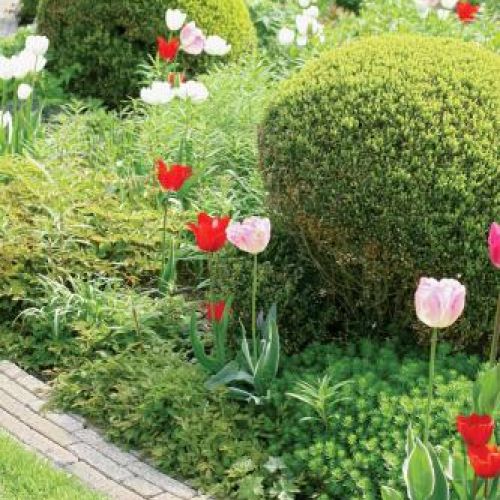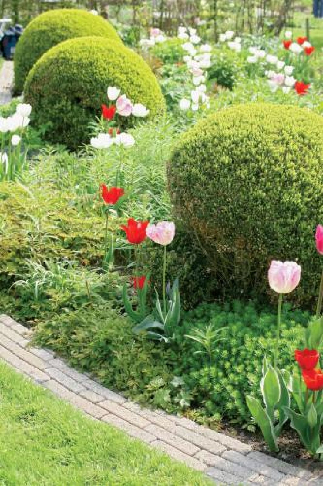 Wiosną przyda się trochę mocnych barw. Dlatego wszędzie pojawiają się jaskrawe czerwienie i pomarańcze – kwitną tulipany, narcyzy i cesarskie korony. Taki kontrastowy akcent dobrze robi zielonym rzeźbom.