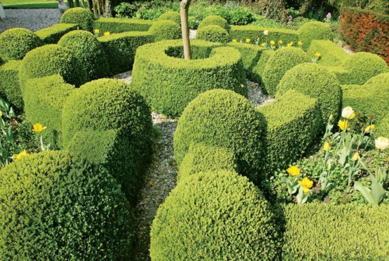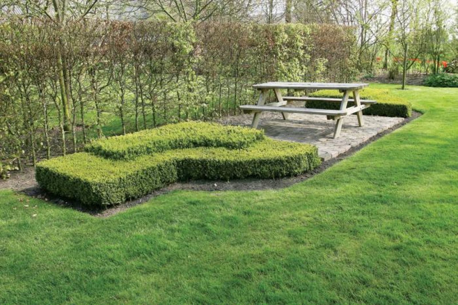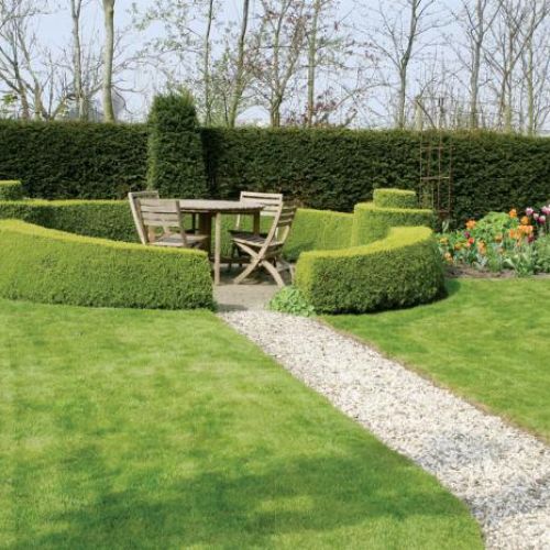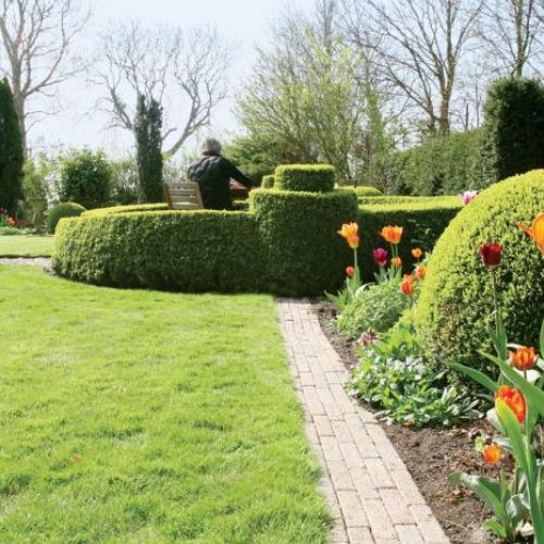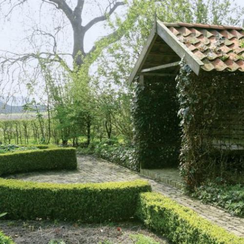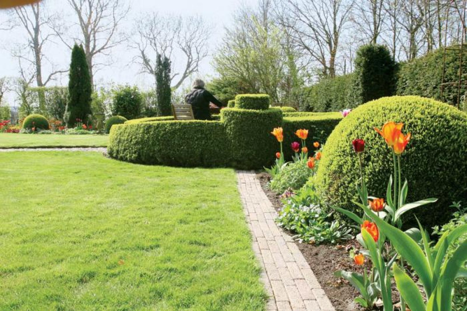 Dirk, myśląc o własnym ogrodzie, chciał, aby było w nim jak w domu. Poprosił projektanta o salon, kuchnię z zielnikiem, jadalnię, pokój do odpoczywania, reprezentacyjny hol. Dlatego pojawiły się „ściany”. A to z wysokich grabów, a to z ciemnozielonych krzewów cisa, te najniższe zaś z bukszpanu.