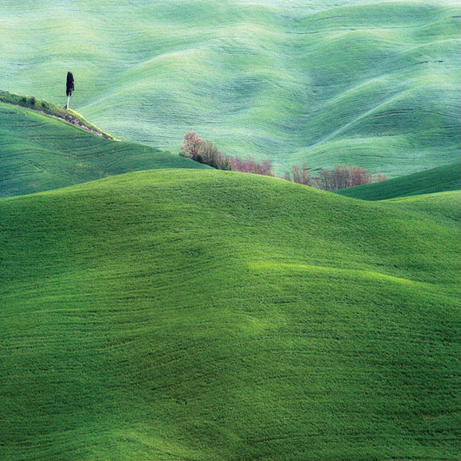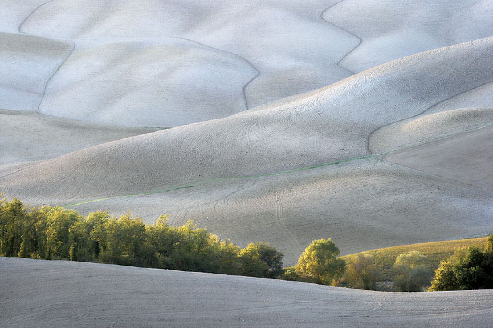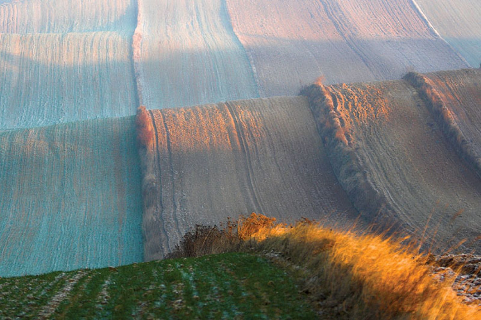 W krajobrazy nie ingeruje jednak za mocno. – Owszem, zdarza się, że sklejam dwa różnie naświetlone identyczne kadry, ale robi to także wiele aparatów cyfrowych automatycznie. Wykorzystuje za to naturę. Wybiera plenery w miejscach, gdzie są duże płaszczyzny, jak pola Moraw czy Toskania. Wagę przywiązuje do cieni, które w niskim świetle rzucają pagórki. To one oszukują wzrok i sprawiają, że wszystko wydaje się wyższe niż w rzeczywistości. Poza tym tak kadruje obrazy, żeby nie było nieba.